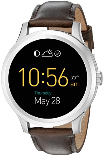 -. Feature : Fashionable take on wearable tech- round 46 mm case in refined stainless steel featuring a digital display dial, and brown leather band and buckle closure. / Compatible with all Fossil brand 22mm straps and features customizable faces to fit your style / Compatible with Android Devices 4.4+ and iOS 8.2+ / iPhone 5+. If you are running ios 10, this Fossil Touchscreen Smartwatch requires the ios 10.0.2+ software update released from Apple. / Receive display notifications like email, phone calls and texts, and social media notifications and connect to your favorite apps. / Engineered with Intel Innovation