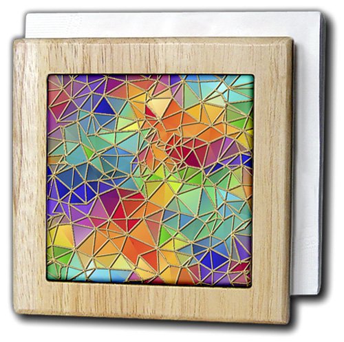 -. Title : 3dRose Anne Marie Baugh - Polygon - Multi-Colored Gold Trimmed Polygon Pattern - Tile Napkin Holders