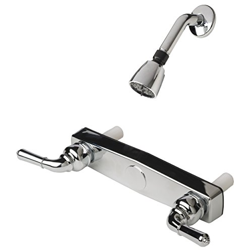 Builders Shoppe 3320CP/4010CP Mobile Home Non-Metallic Two Handle 8" Shower Faucet Valve with Matching Shower Head/Arm/Flange Chrome Finish