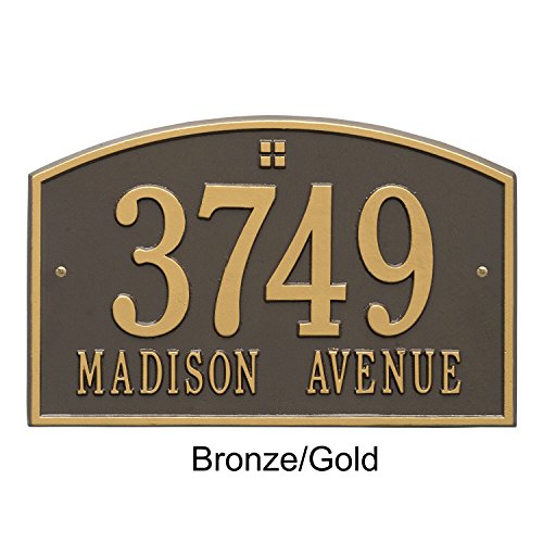 -. Feature : Dimensions: 15" x 9.5 " x 0.375" / Line 1: 5 - 4.5" numbers Line 2: 17 - 1.25" characters / Space is counted as one character / All characters are in capital letters / Please message us after checking out with your color choice (Black/Gold, Pewter/Silver,Green/Gold,Red/Gold, Antique Brass, Bronze/Gold, Black/Silver, Black/White, White/Gold, Antique Copper,Oil Rubbed Bronze) & the address you want on the plaque