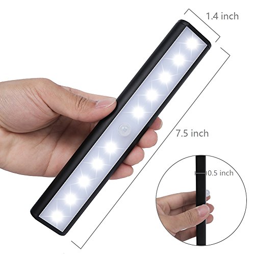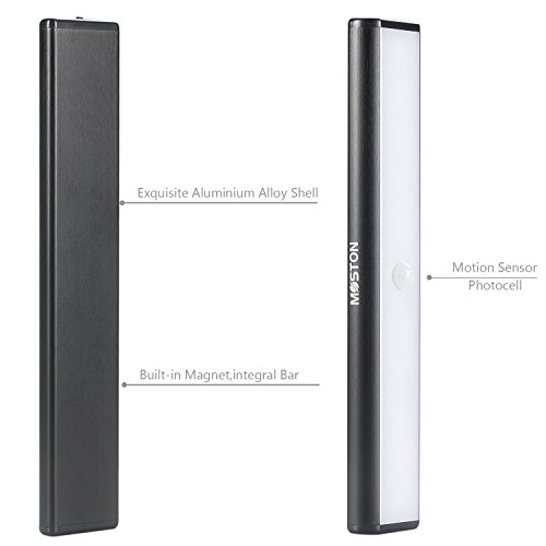 Moston Upgrade Rechargeable 10 LED Magnetic Motion Sensor Night Light,Dusk to Dawn Phototcell,Auto On/Off.Portable,Cordless,Stick-on Anywhere for Cabinets,Closet,Wall(Black)