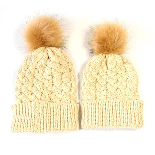 | [해외]엄마 아기 뜨개질 겨울 모자 여성 아이 따뜻한 모자 니트 자란 모자 양털 크로 셰 비니 |
