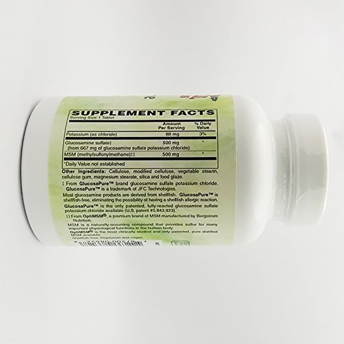 Clinically effective doses of glucosamine/chondroitin sulfate and MSM. Our glucosamine sulfate is fully-reacted and derived from glucosamine sulfate potassium chloride, as opposed to the sodium chloride form. This helps reduce the potential increase in sodium intake associated with this form. We use chondroitin sulfate from one of the world's leading manufacturers of chondroitin sulfate. OptiMSM® from Bergstrom Nutrition is the only MSM that is manufactured in a dedicated facility in the USA.