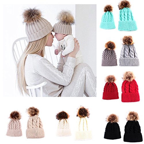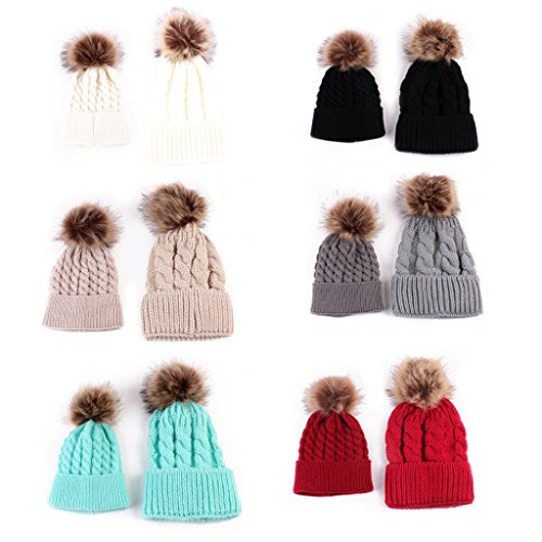Description: Makes a great gift and perfect for family portraits! New Mommy and Me style is available in sizes to fit babies to adutls! Hand knit in soft acrylic yarn,it is comfortable to wear and keep stylish This beautifully soft cable knit has a cuff that can be worn up, or down as slouchy style and is trimmed with a fluffy pom pom. Occassion: Snowboarding, Paintballing, Motorcycling, Jogging, Running, Hiking, Skiing, Bicycling, Snowmobiling, Mountain Climbing, Camping fishing, trekking, hunting Specification: Material: Yarn Size: One Size Parent Style: Length: 30cm/11.81inch; Hat Brim: 40-65cm/15.75-25.59 inch Kids Style: Length: 23cm/9.06 inch; Hat Brim: 15-27cm/5.9-10.63 inch