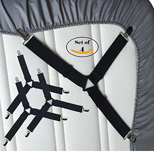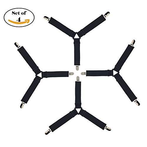 Bed Sheet Holder Straps, Adjustable Bed Sheet Fastener and 3 Way Mattress Cover Holder Fasteners the Triangle Bed Sheet Keeper with Heavy Duty Grippers Clips (Triangle – Black- Set of 4)