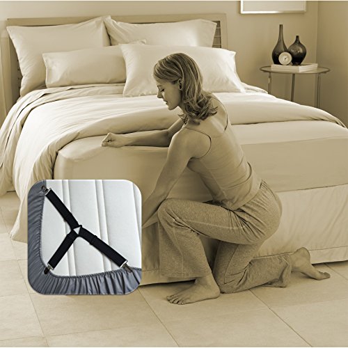 MULTIPURPOSE: These Versatile Bed Sheet Grippers Work with All Types of Bedding; High Quality and Eco-friendly Elastic Nylon Straps for Simple Bedside Installation