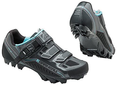 Studio : Louis Garneau Publisher : Louis Garneau Binding : Misc. Product Description Designed for the trail, yet versatile enough for fitness, recreational and urban rides, the Louis Garneau Women's Mica MTB Shoes deliver no compromise performance at a budget-friendly price. Ergo Grip II outsole blends mud-shedding efficiency with high grip for comfortable walking. HRS-80 retention system keeps the heel in position during the pedal stroke for improved power output. Seamless upper construction eliminates pressure while providing a durable, yet breathable fit. Decentered Velcro straps reduce pressure and increase heel support. Ratchet closure with vertical adjustment helps accommodate various pedaling styles. Removable studs give extra traction over varied terrain. Ergo Grip II outsole is made with nylon and rigid thermoplastic for maximum pedal power, excellent mud shedding and perfect walking grip Removable studs increase rigidity, traction and allow for better mud evacuation HRS-80 retention system positions the heel for a more powerful pedal stroke Seamless upper construction prevents pressure points and reduces weight Synthetic leather and mesh upper is supple, breathable and water-resistant Single density EVA insole adds comfort Reflective heel adds visibility Main strap with ratchet closure and Velcro straps Decentered strap and outer rings eliminate pressure points Adjustable vertical ratchet closure effectively supports various types of forefoot pedaling Women's specific design Position your cleat using the visual display (compatible with SPD cleats) Includes CoolMax Ergo Air Hot Stuff (red) insoles with improved arch support 0