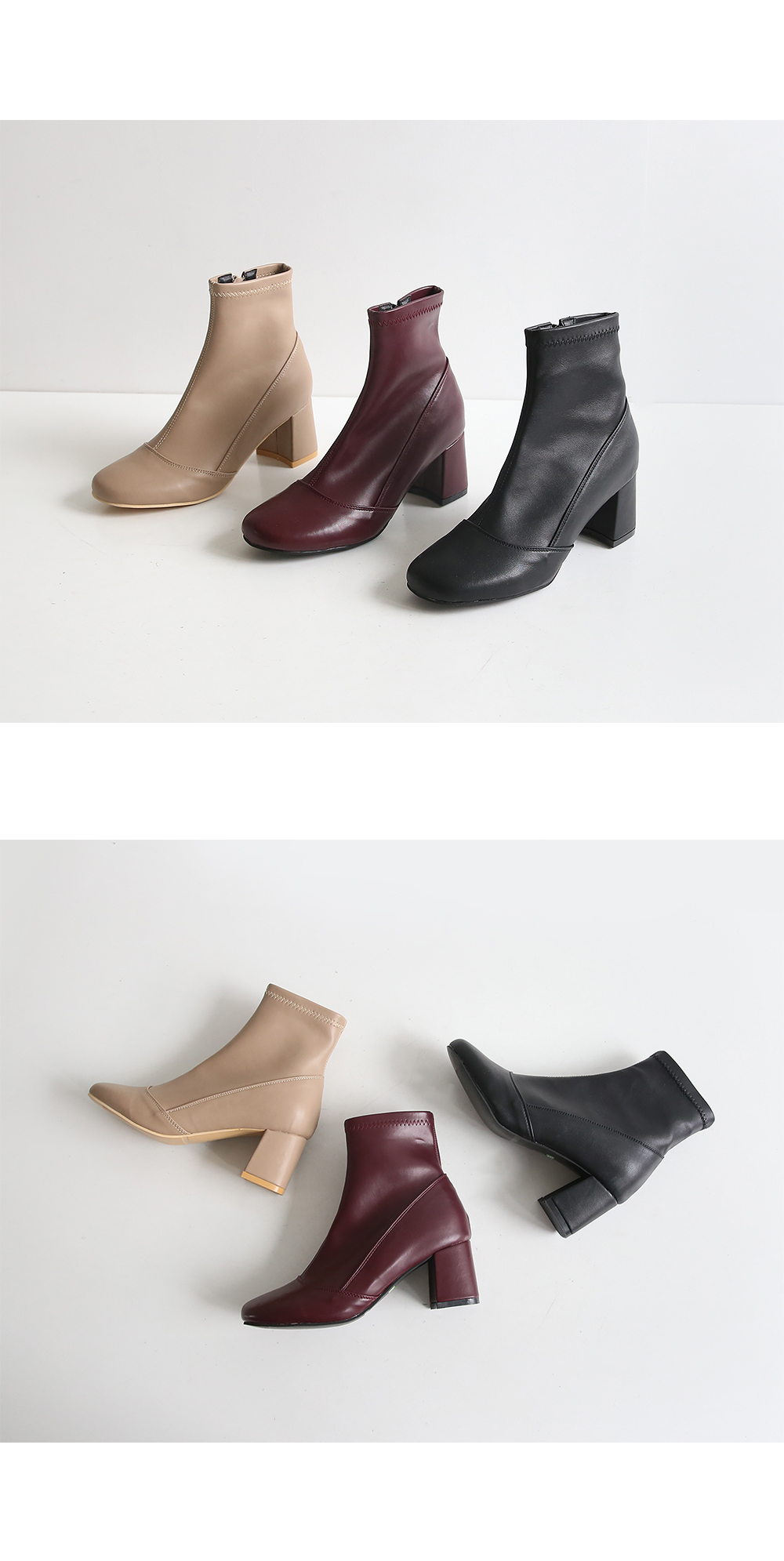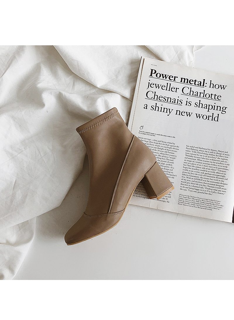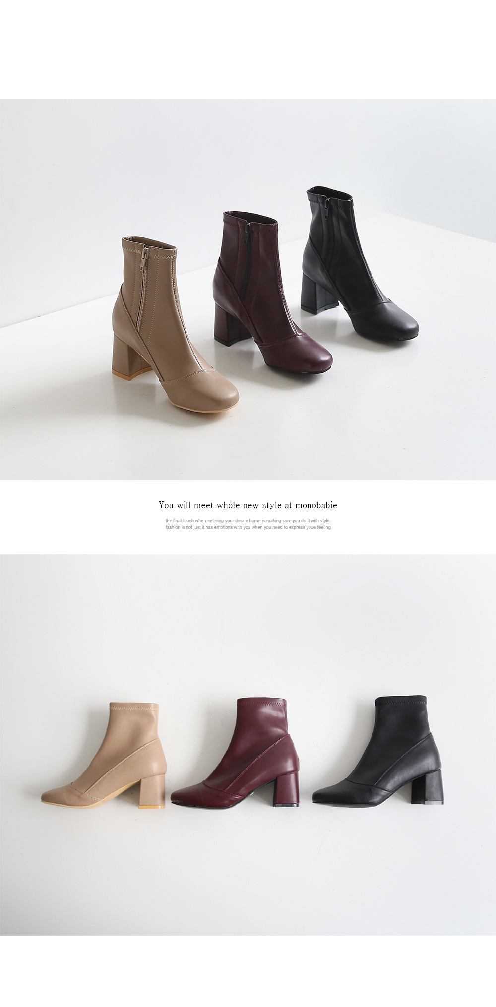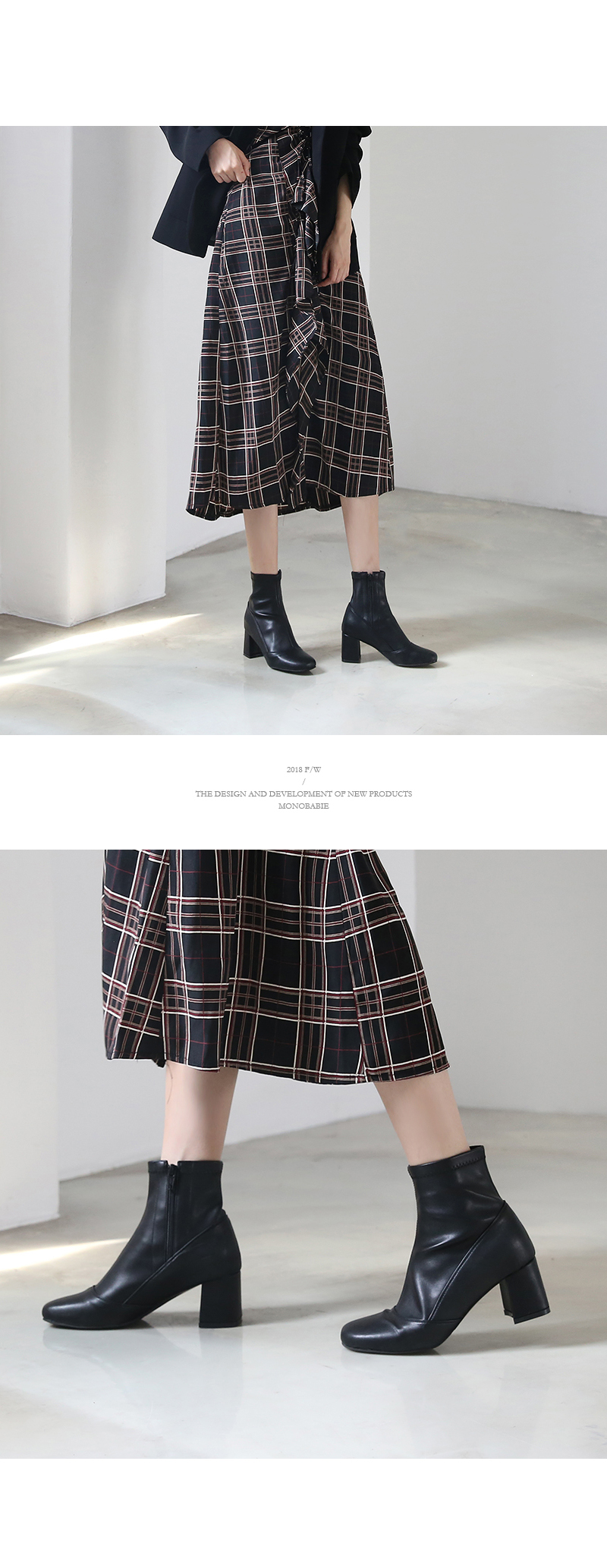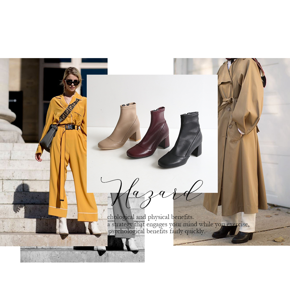 청키한 미들굽 라인이 안정되어 보이는 앵클부츠입니다.