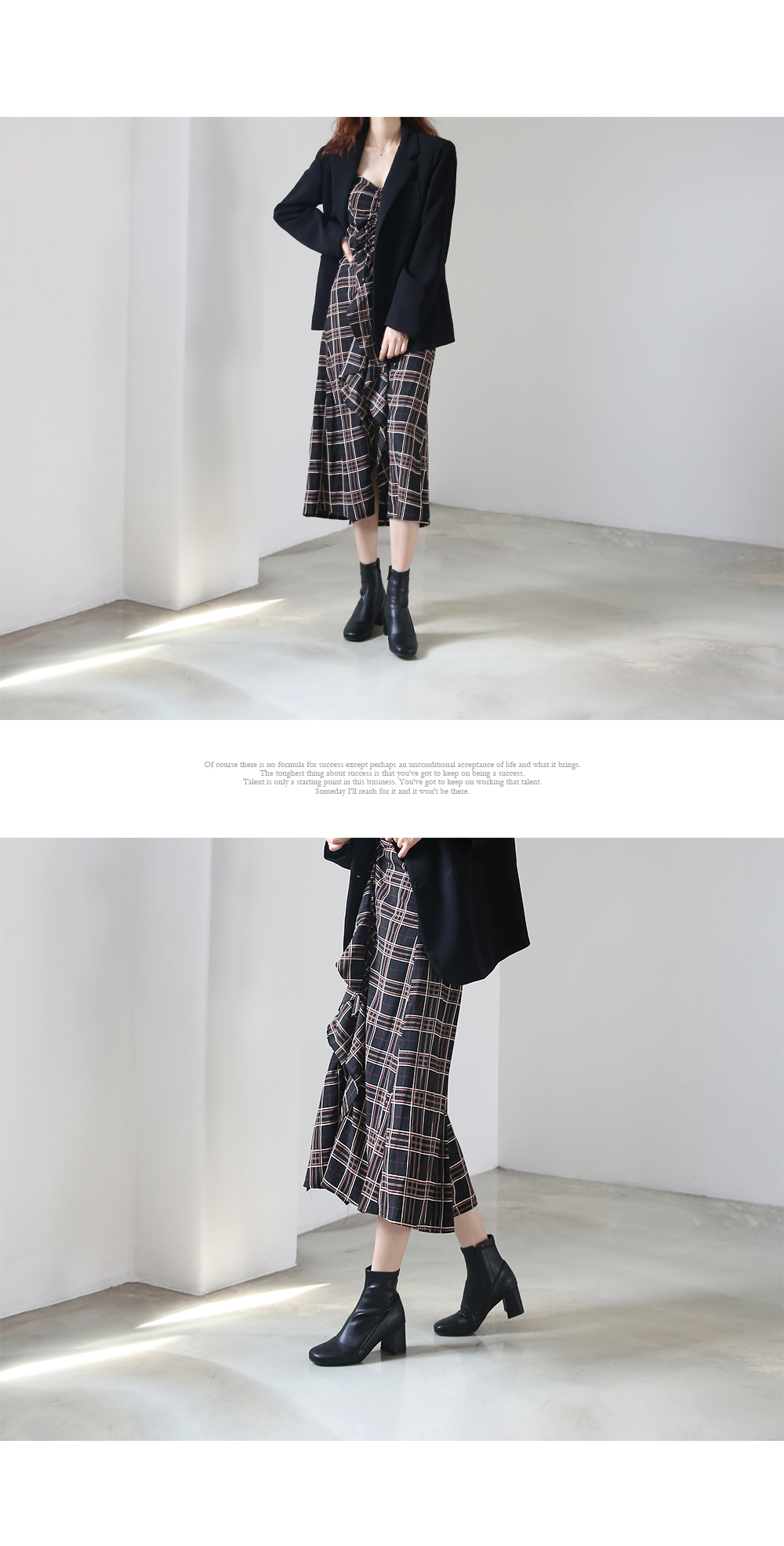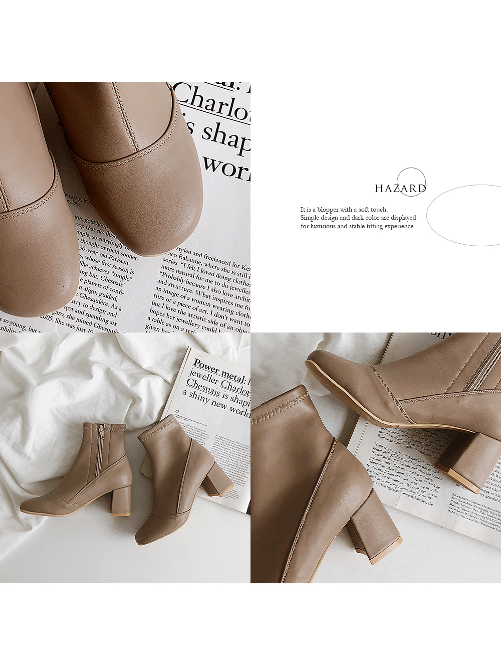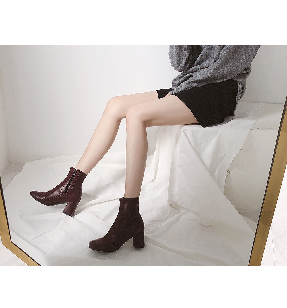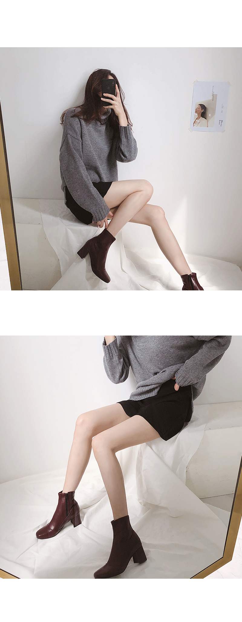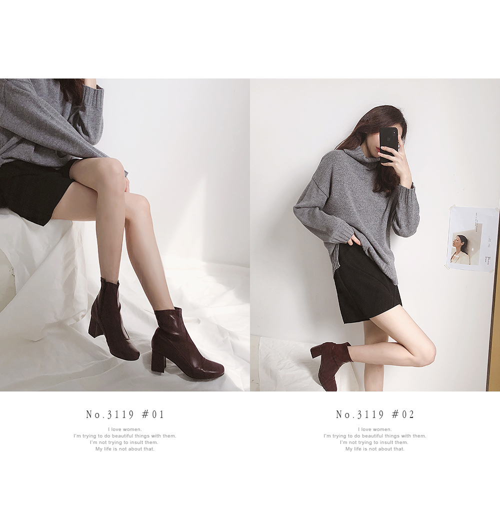 청키한 미들굽 라인이 안정되어 보이는 앵클부츠입니다.
