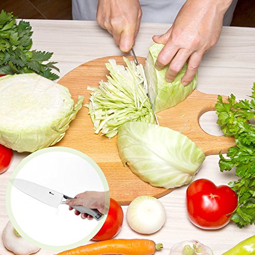 Our chef's cooking knife has an ergonomic, no-slip handle to prevent hand fatigue & accidents