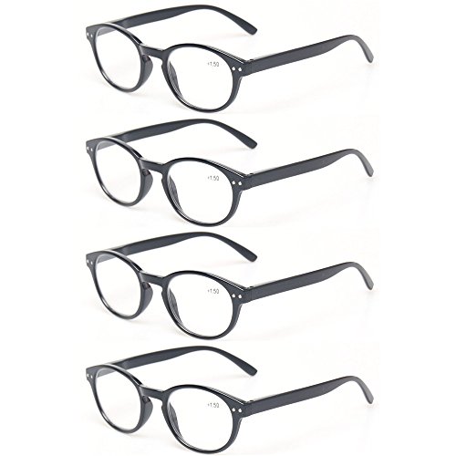 -. Title : Reading Glasses 4 Pack Fashion SP.R.Ing Hinge Readers Retro Round Glasses for Men Women