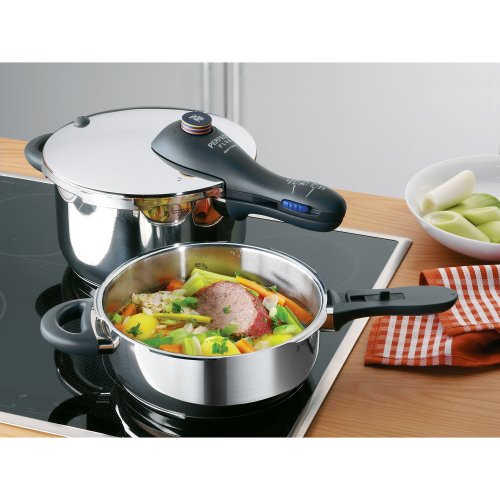 793119300 Size: 3 Quart Features: -Reduces cooking time by up to 70 percent.-Comfort oriented handle design.-Advanced safety features prevent excessive pressure build-up.-Made in Germany. Dimensions: -6.5 - 12'' H x 16.5 - 17'' W x 10.2 - 10.24'' D. Collection: -Perfect Plus collection.