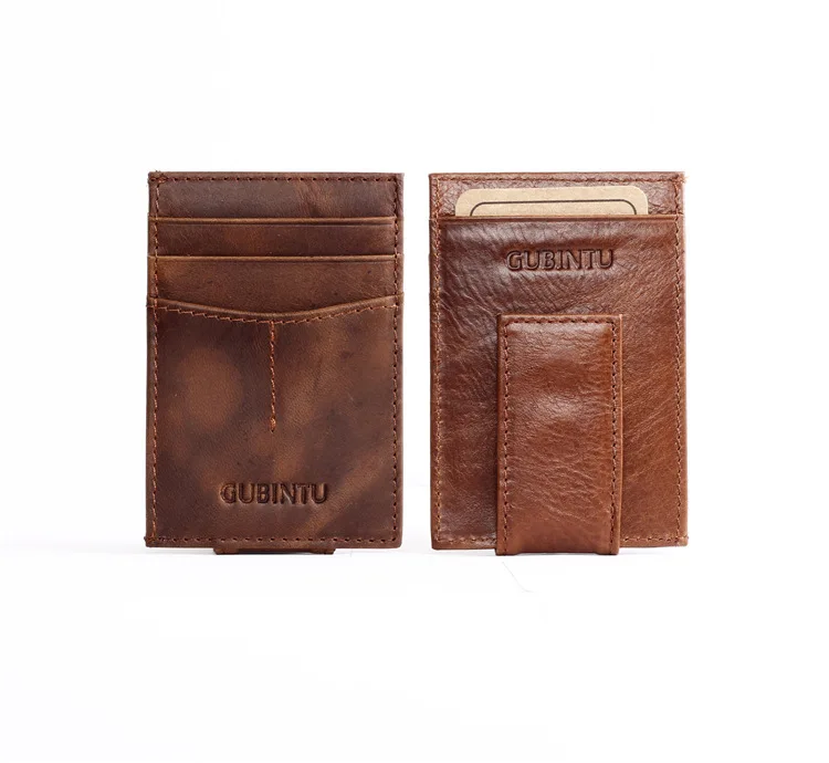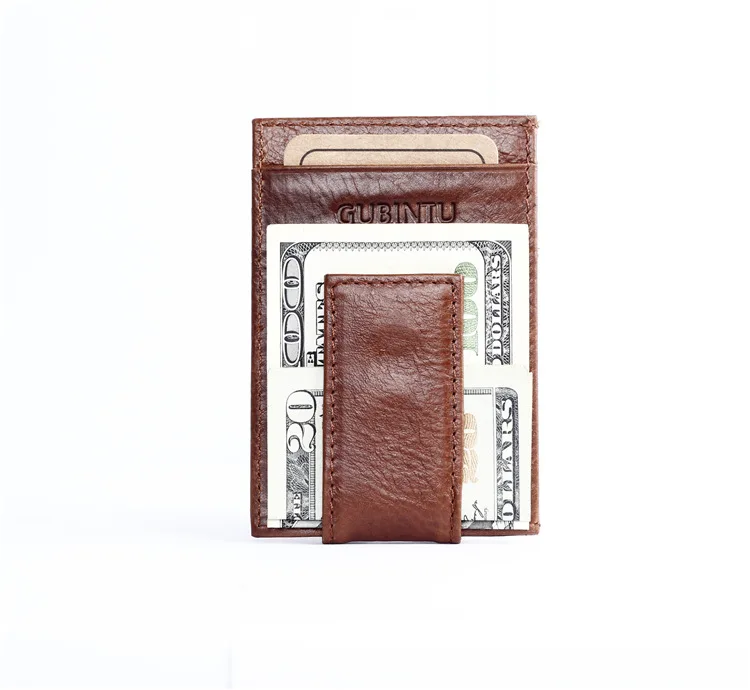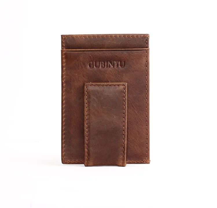 Men's money clip genuine leahter:Money clip With Credit Card Male