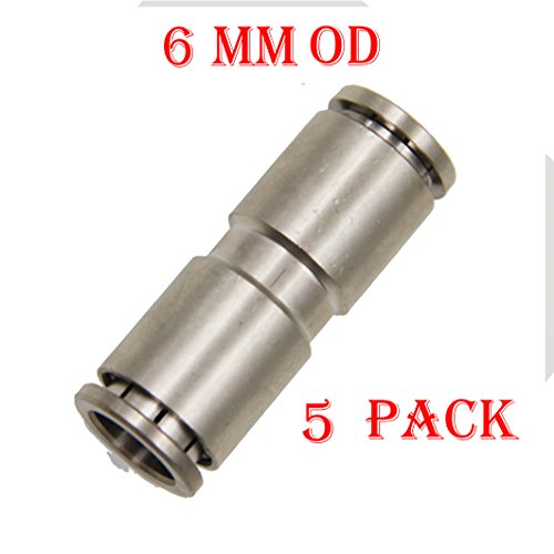Utah Pneumatic Pack Of 5 Nickel-Plated Brass Push To Connect Fittings 6mm Od Straight Connect Push Fit Fittings Tube Fittings Pneumatic Fittings Air Line Fittings Tube Connectors (6mm straight Brass)