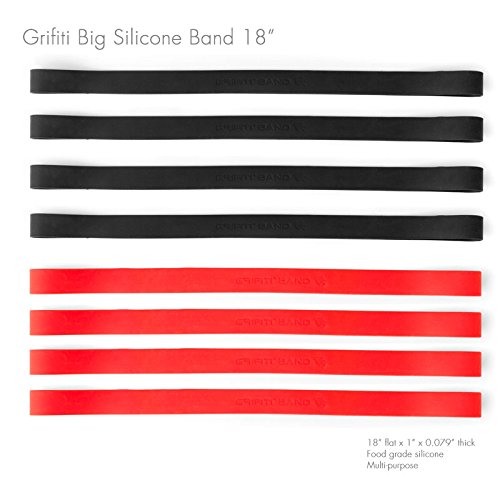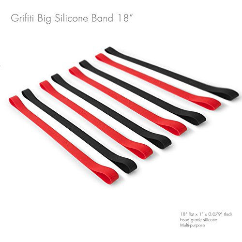 8 PACK with RED and BLACK BANDS! These are our SUPER DUPER STRETCHY 18" Grifiti Big-Ass Bands! Fat silicone bands that work like giant rubber or elastic bands for cooking, heat applications, wood working...just about anything!