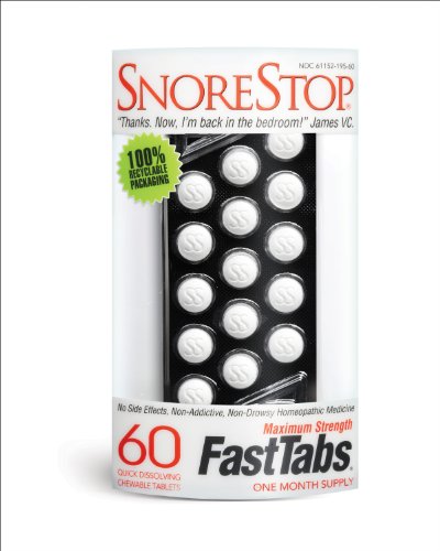-. Binding : Health and Beauty -. Brand : Snorestop -. EAN : 0769682267032 -. Feature : #1 Selling Brand of Anti-Snoring Products in the USA (Nielsen) SnoreStop simply spray or chew snoring away. / FDA Regulated Homeopathic Medicine. A+ Rating with the BBB. All ingredients are accepted by the FDA manufactured in an FDA-approved facility in the USA. / Patented & Medically Proven Formula. Developed by Doctors. Published medical study shows up to 79.5% positive result with no drug interactions. / Reduces or Eliminates Symp of Natural Snoring since 1995. SnoreStop has proven to be effective for millions worldwide. We have more than just one solution for your snoring. / No Known Side Effects. Non Habit-Forming. SnoreStop is natural; it does not contain chemicals or stimulants of any kind. Our throat & nasal sprays are oil-free. -. IsAdultProduct : 0 -. Label : Green Pharmaceuticals -. LegalDisclaimer : Information about this product is provided for informational purposes and is not meant to substitute for the advice provided by your own physician or other medical professional. You should not use the information contained herein for diagnosing or treating a health problem or disease, or prescribing any medication. You should read carefully all product packaging. If you have or suspect that you have a medical problem, promptly contact your health care provider. Information and statements regarding dietary supplements have not been evaluated by the Food and Drug Administration and are not intended to diagnose, treat, cure, or prevent any disease. All discounts are taken from sested retail prices. -. Manufacturer : Green Pharmaceuticals -. Model : 769682267032 -. MPN : 769682267032 -. NumberOfItems : 1 -. PackageQuantity : 1 -. PartNumber : 769682267032 -. ProductGroup : Health and Beauty -. ProductTypeName : HEALTH_PERSONAL_CARE -. Publisher : Green Pharmaceuticals -. ReleaseDate : 2010-12-10 -. Size : 60 -. Studio : Green Pharmaceuticals -. Title : SnoreStop FastTabs, 60 Count -. UPC : 769682267032
