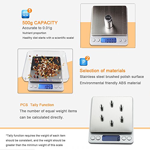 DGQ 500g/1.1lb Digital Jewelry & Kitchen Scale Multifunction Food Scale by 0.01g/0.001oz, Stainless Steel