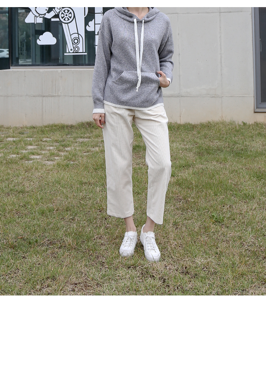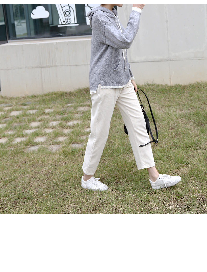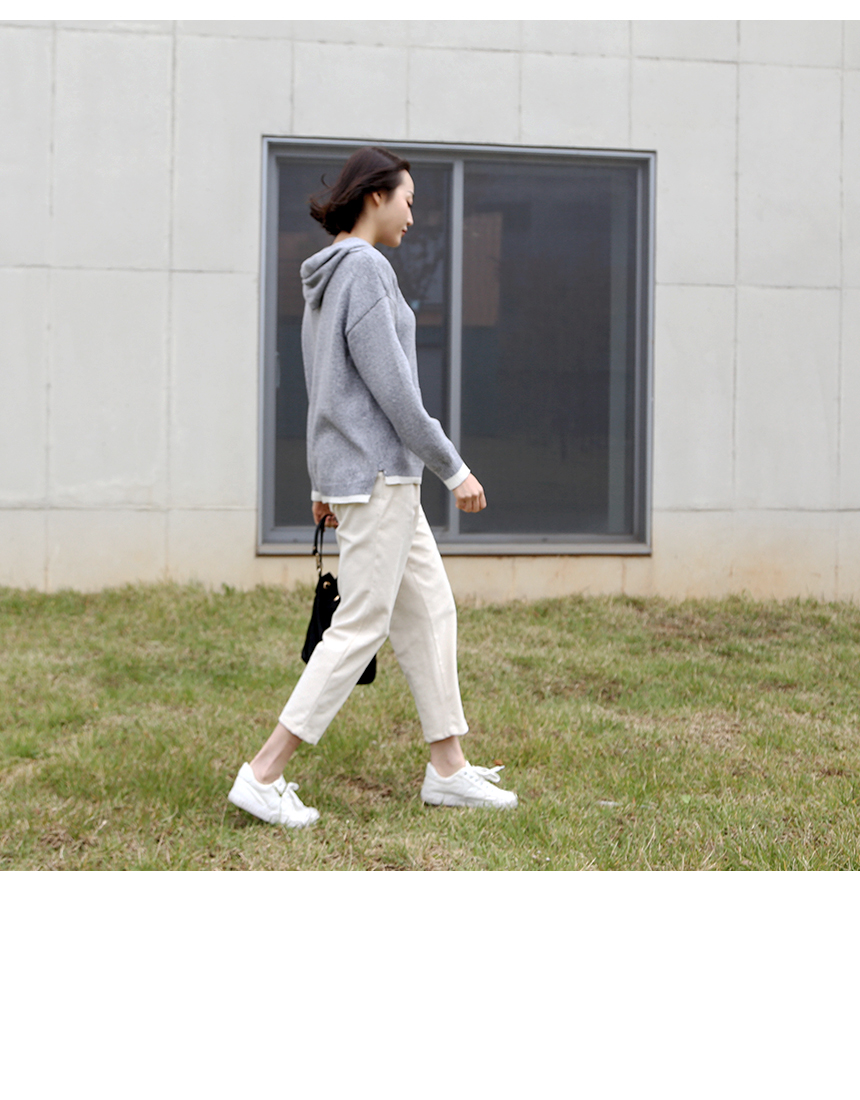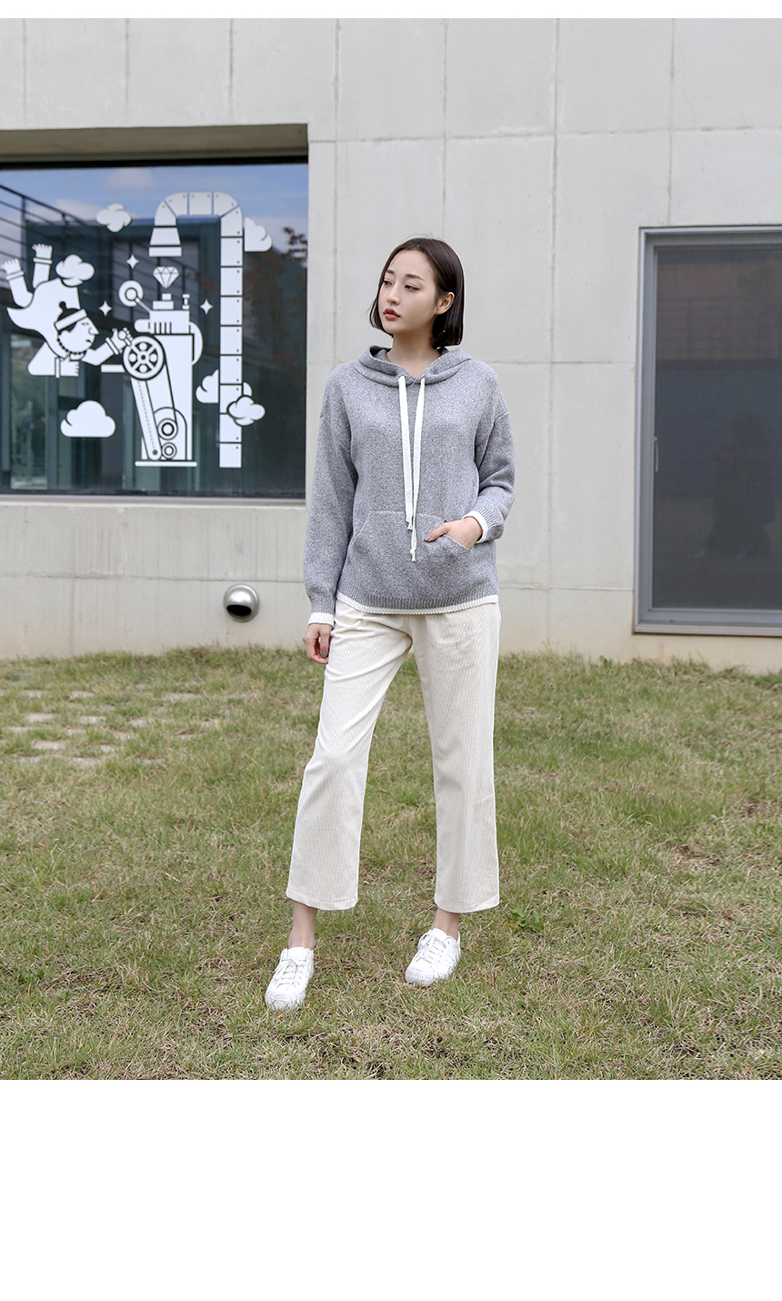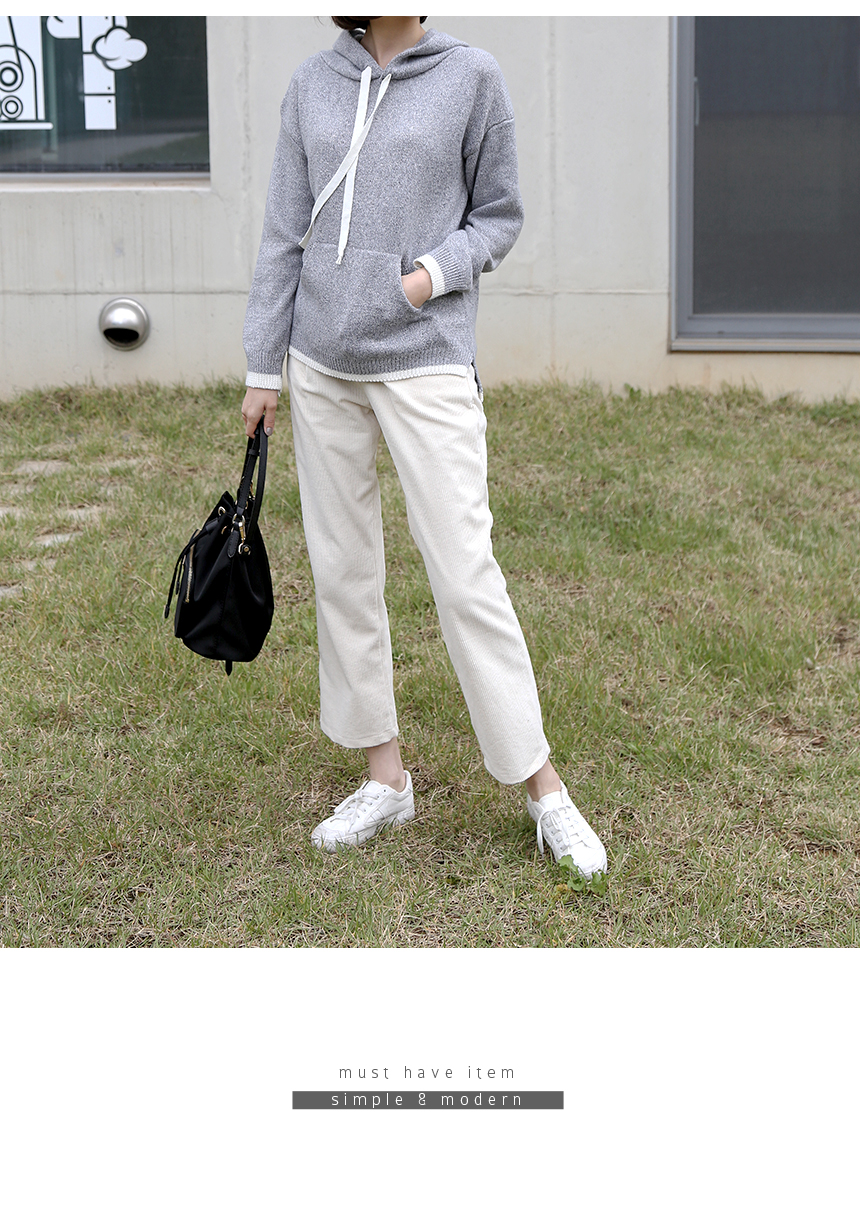 라운지 배색 후드 니트