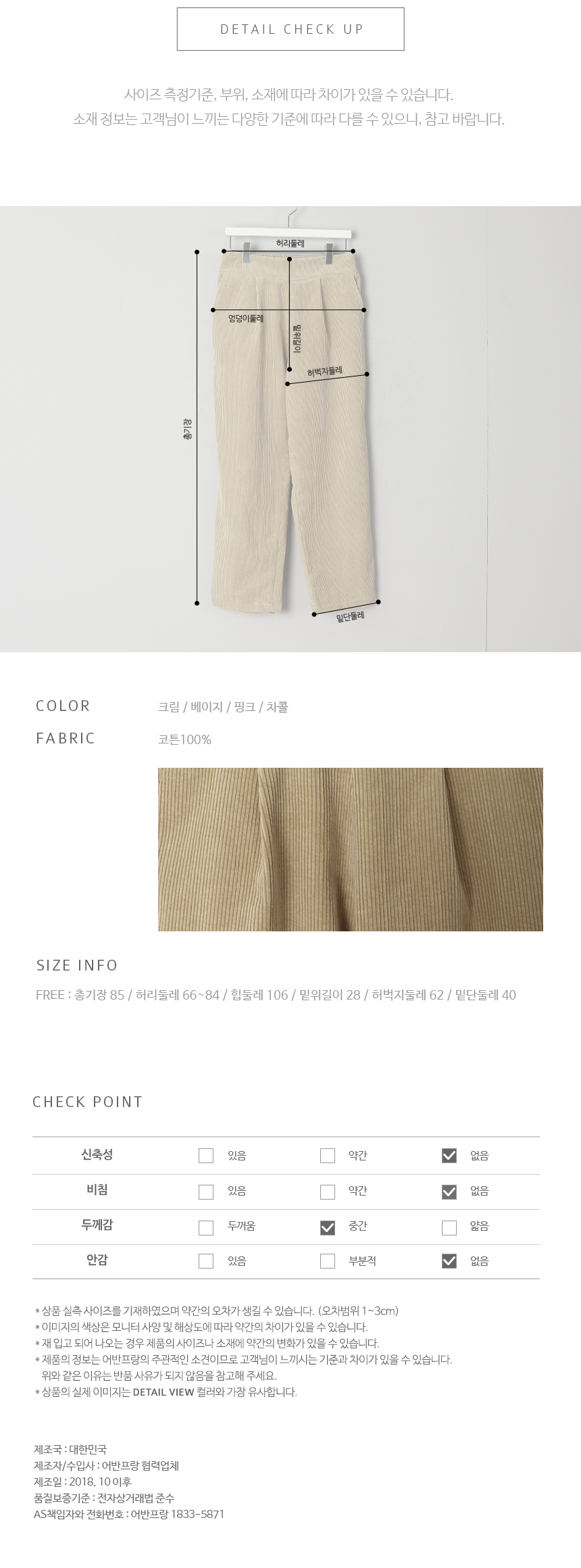 색상은 크림, 베이지, 핑크, 차콜
