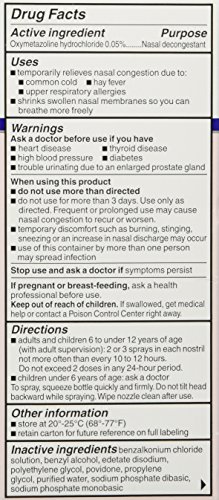 -. Feature : Compare to Afrin Original Active Ingredient / Temporarily Relieves Nasal Congestion Due to Common Cold, Hay Fever, Upper Respiratory Allergies / Shrinks Swollen Nasal Membranes So You Can Breathe More Freely / 12 Hour Nasal Spray