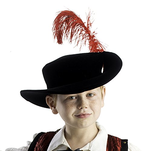 -. Binding : Toy -. Brand : Dress Up America -. ClothingSize : One Size - Kids -. Color : Black -. Department : boys -. EAN : 0086138919636 -. Feature : ► Product comes complete with: Hat / ► Hat has an attached big red feather / ► Made with 100% Polyester Featuring: resistant to most chemicals, stretching and shrinking, wrinkle resistant, mildew and abrasion resistant / ► One size / ► Musketeer Hat costume accessory -. IsAdultProduct : 0 -. Label : Dress Up America -. Manufacturer : Dress Up America -. Model : 926 -. MPN : 926 -. PackageQuantity : 1 -. PartNumber : 926 -. ProductGroup : Apparel -. ProductTypeName : TOYS_AND_GAMES -. Publisher : Dress Up America -. Size : One Size -. Studio : Dress Up America -. Title : Boys Musketeer Hat Red Feather By Dress America -. UPC : 086138919636