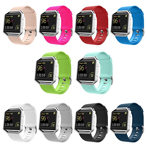 UMTELE Silicone Replacement Band with Quick Release Pins for Fitbit Blaze Smart Fitness Watch, Large - 10pcs