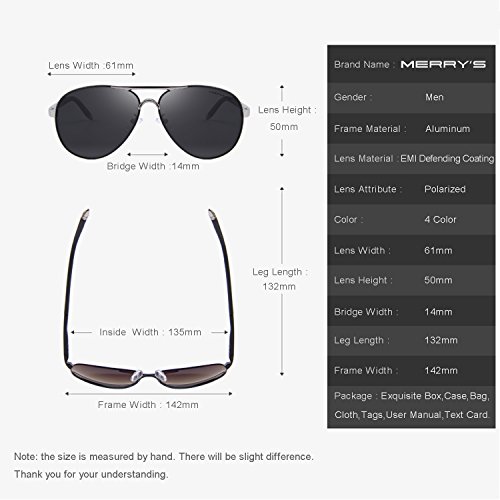 Lens Height:50MM(1.97 Inches)--Lens Width:61MM(2.40Inches)--Temple Length--132MM(5.20Inches)--Nose Bridge:14MM(0.55Inches)--Frame Length 142MM(5.59 Inches)
