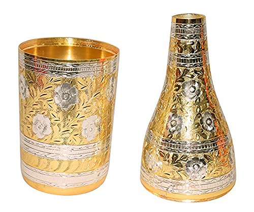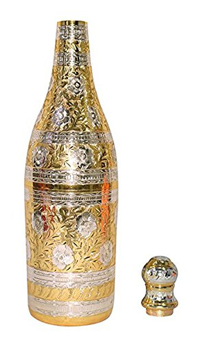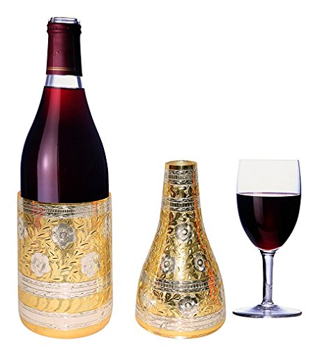 Antique Mughal Style Gold Silver Plated Pure Brass Engraved Premium Champagne Wine Bottle Holder With Red Velvet Box Party Dining Set Business Gift.. Perfect Christmas Gift