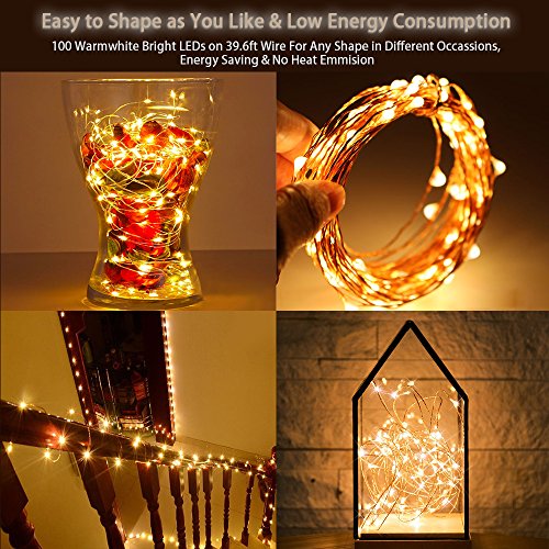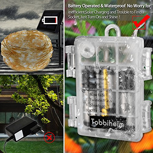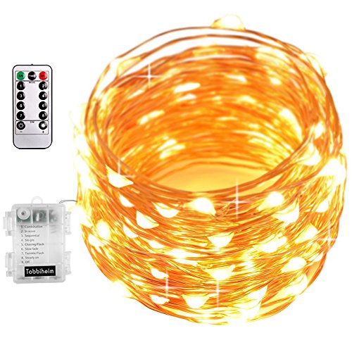 -. Title : Tobbiheim 39.3 ft Fairy Lights String 100 LED 8 Modes Battery Powered IP68 Waterproof Battery Case with Remote and Timer, Copper Wire Light for Outdoor & Indoor - Warm White(Battery Not Included)