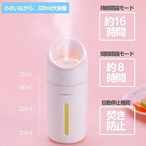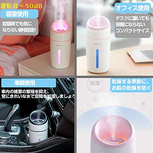 ●持ち運びに便利なコンパクトサイズのため、寝室、オフィス、車など場所を選ばず使用可能。見た目もかわいいので、お部屋をしっかり潤いながら、美しいインテリアとしての役割も果たします。