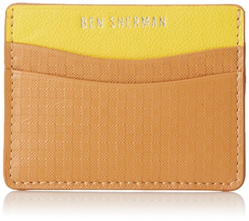 -. Binding : Apparel -. Brand : Ben Sherman -. Department : mens -. Feature : Two-tone card holder with gingham textured overlays, foil logo, and debossed Union Jack on back / Four card slots and one slip pocket -. Label : Ben Sherman Men's Collections -. Manufacturer : Ben Sherman Men's Collections -. Model : MH10375 -. PackageQuantity : 1 -. ProductGroup : Apparel -. ProductTypeName : ACCESSORY -. Publisher : Ben Sherman Men's Collections -. Studio : Ben Sherman Men's Collections -. Title : Ben Sherman Men's Embossed Leather Gingham Card Holder