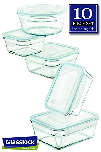 Glasslock Glass Storage Containers with Lids 10pc Set Nesting Design, Oven Safe (five containers and five lids)
