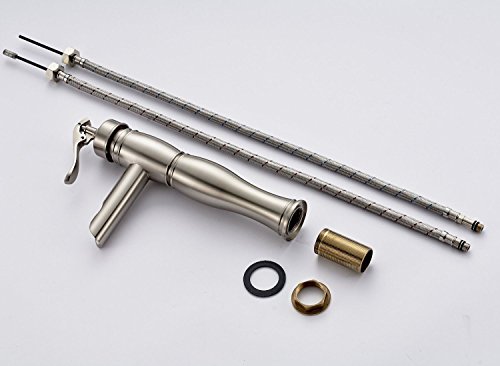 - Feature : Use for bathroom sink / Body Material: Brass; Finish: Brushed Nickel / Total Height: 31cm(12.2 inch); Spout Height: 20cm(7.87 inch) / Installation Hole Diameter: 3.5-4.5cm(1.4-1.8 inch) / Include: one faucet, two flexible pipes