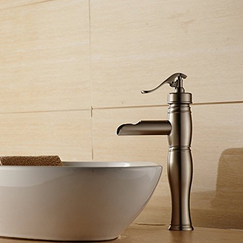 - Title : Beelee Deck Mounted Single handle Waterfall Bathroom Sink Faucet, Brushed Nickel Finish
