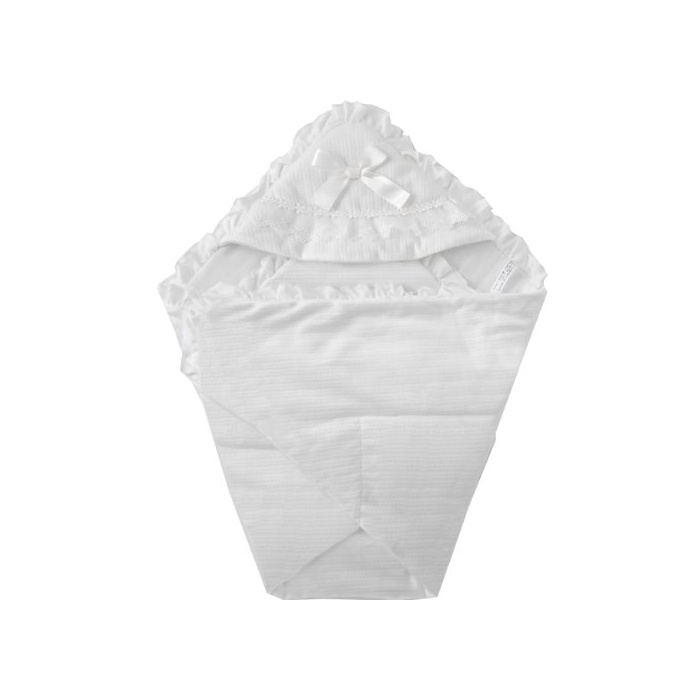 《니시키》 퓨어 화이트 새틴 리본 자수 레이스 부착 아기의 포대기(아프칸)80cm×80cm 화이트 P9170W
