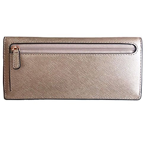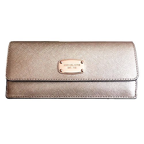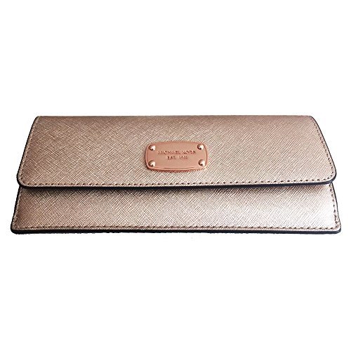-. Binding : Apparel -. Brand : -. Color : Rose Gold -. Department : womens -. EAN : 0190049116586 -. Feature : Rose gold saffiano finished leather with polished rose gold tone hardware / Flap style snap closure on the front and accordion zippered pocket on the back / Features 8 card slots and 2 full length bill compartments / Front is accented with logo nameplate which has been updated for 2015 with rounded corners / Measures approximately 7.75" (L) x 3.75" (H) x 1" (W) and has an MSRP of $108.00 -. IsAdultProduct : 0 -. Model : 35S6MTVE1M -. MPN : LYSB01C3GFOJA-WMNFSHACCSS -. PartNumber : LYSB01C3GFOJA-WMNFSHACCSS -. ProductGroup : Apparel -. ProductTypeName : ACCESSORY -. Size : One Size -. Title : Jet Set Travel Rose Gold Leather Flat Wallet -. UPC : 190049116586