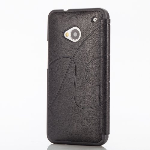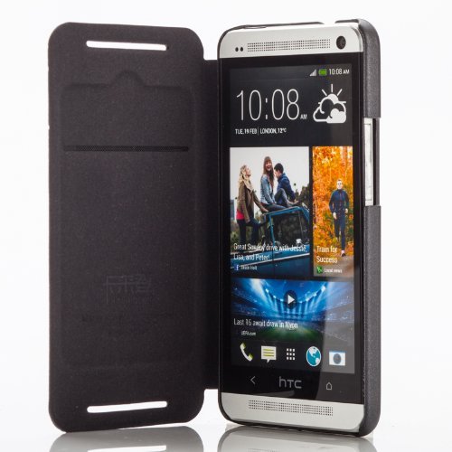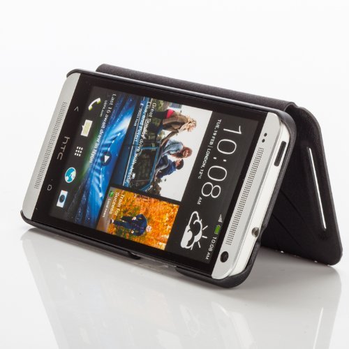 Gearonic KLD Oscar II Style Snap-On Ultra Thin Side Flip Synthetic Leather Cover Case for HTC One M7 - Retail Packaging - Black