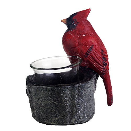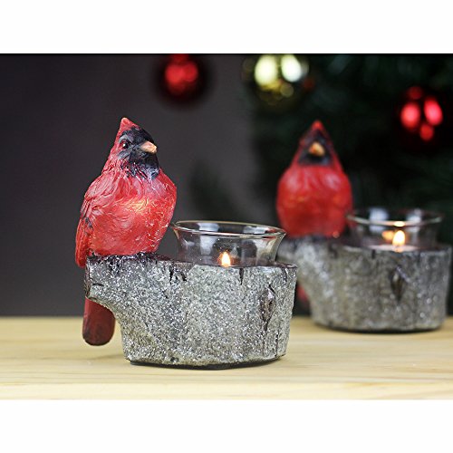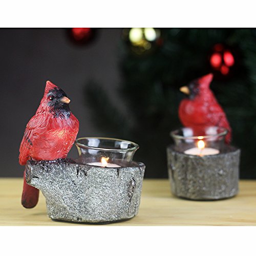 Fargal Resin 4.75" Red Cardinal Sitting On Birch Branches Candle Holders Seasons Decorative Set (Set of 2)