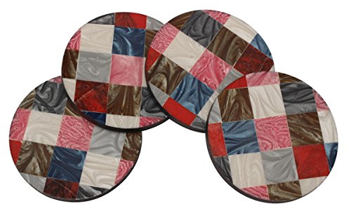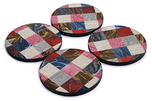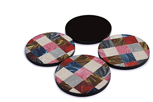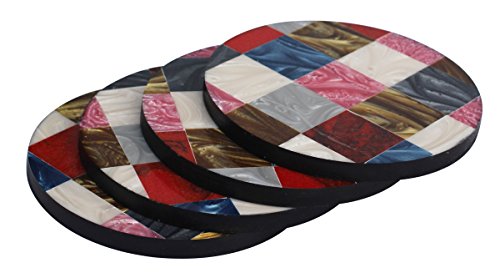SouvNear Round Checkers Coasters - Multicolor Checkerboard Pattern - Set of 4 Unique Durable Handmade Coasters for Drinks, Beverages, Wine Glasses - Keep Your Furniture Safe