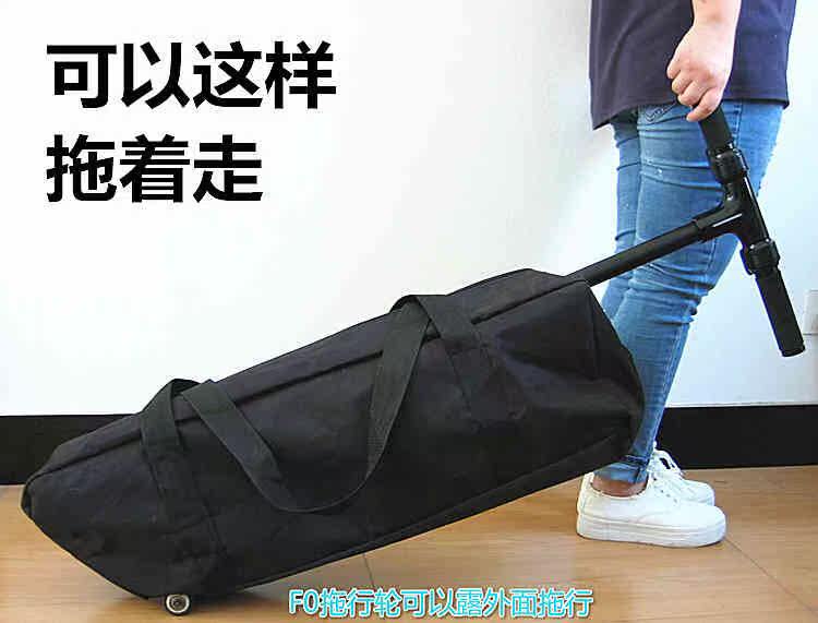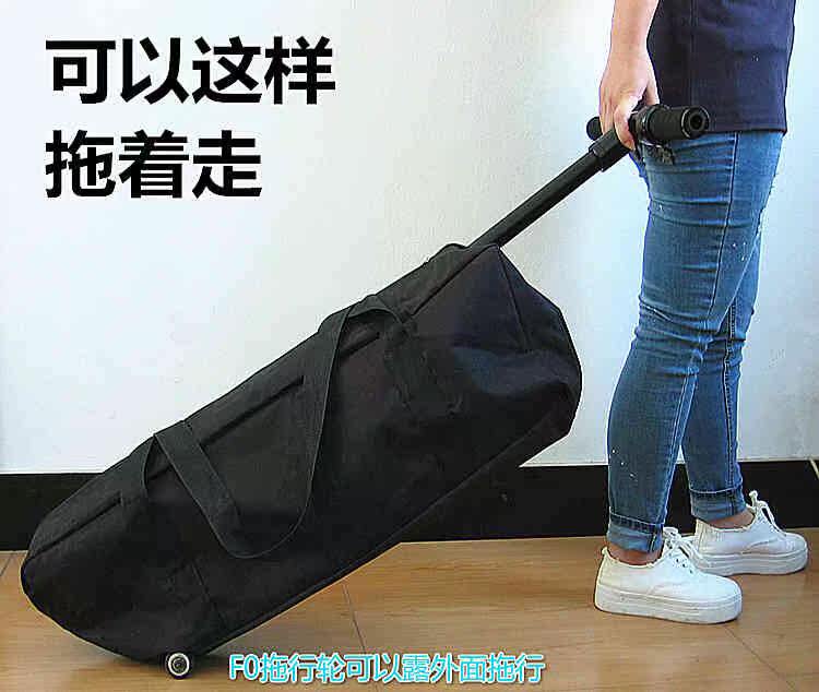 The trailer version is a special package for fast-wheel F0. The storage version is an ordinary 6-inch package. The difference is that a drag wheel can be dragged to reveal F0. One needs handcuffs. * There are 2 holes at the bottom of the trailer, F0 bagging, dragging wheels can be exposed, dragging and walking without hands; Size 90*26*15cm Fast Wheel F0 is a feature of the dragging design after dragging, dragging There are two holes at the bottom of the bag, and the F0's tow wheel is aligned with the two holes and tied with a magic strap to drag. Drag version