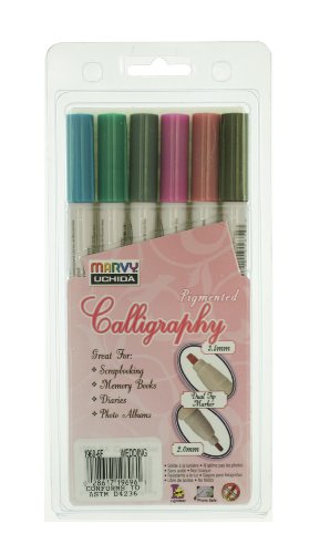 -. Feature : Double ended calligraphy marker with 2.0 and 3.5 tips / Dual ended marker with a 2.0-mm calligraphy tip and a 3.5-mm calligraphy tip at the other end / Pigmented ink / Acid free, non-toxic, lightfast, photo save and archival / Great for scrapbooks