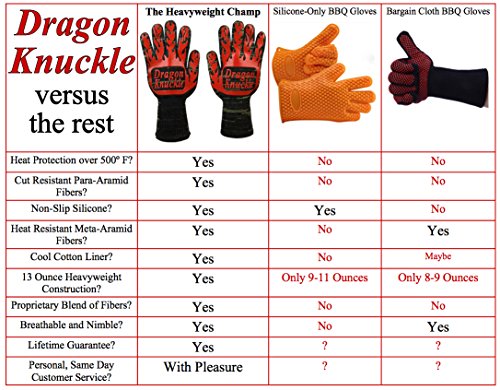 - SATISFACTION GUARANTEE So You Can Be Confident in Your Purchase. Dragon Knuckle Delivers Gloves You Can Trust. We Stand by Our Product. If You Don’t Love These Gloves, Contact Us and We’ll Arrange a Full Refund. So Click “Add to Cart” and Get Your Dragon Knuckle BBQ Gloves Right Now.