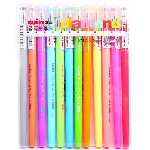-. Title : JX Win-751c Candy Colored Gel Ink Pen ,Diamonds Tip Fine Point Rollerball Pen,Pack of 12 Assorted Vibrant Colors