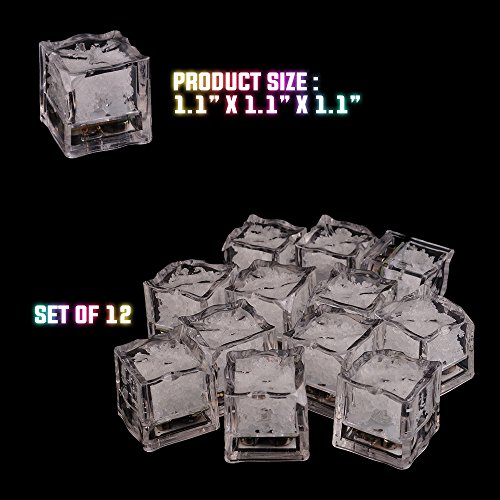 - --- Bright and Colorful --- Comes in a set of 12 LED cubes with wide range of colors (red, yellow, blue, white and pink). All Luminous Ice Cubes (TM) measure 1.1 x 1.1 x 1.1 inch.