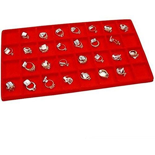 -. Feature : This is a new set of five 32 compartment red flocked tray inserts / With these inserts you are able to keep components, findings or small jewelry pieces organized and visible / Easily remove the tray from the showcase to allow customers to view your jewelry from the countertop / Each compartment measures approximately 1 1/2" x 1 5/8" (38 x 40 mm) / Each insert measures approximately 14 1/8" x 7 5/8" x 1/2" (35.8 cm x 19.2 cm x 12 mm)