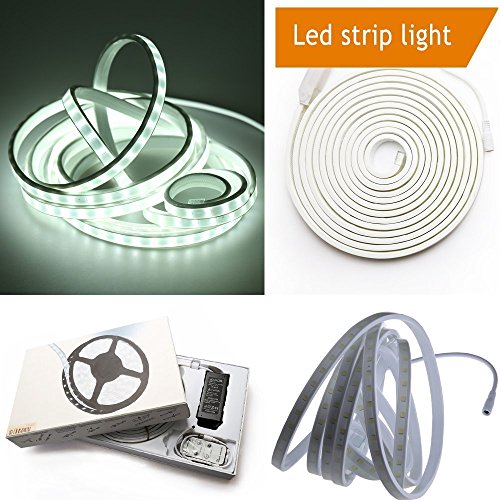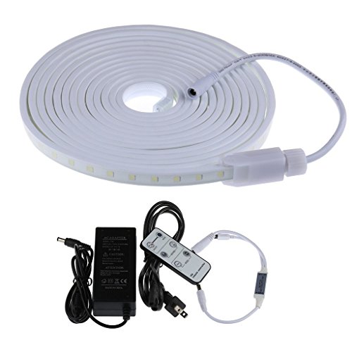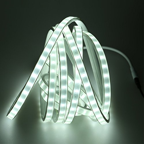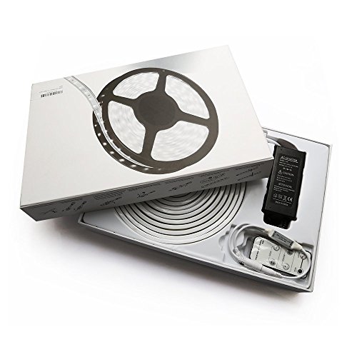 LEDMO 5050 LED Strip Light Kit (Waterproof IP67,16.4Ft 300LEDs, White 6000K, LED Tape Light, Including a 6-Key Remote Control & a DC12V/5A Power Supply), SilIcon Sleeve Version