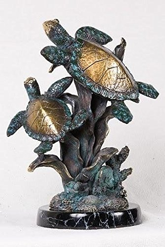 StealStreet SS-BA-E-DBL1137 12" Bronze Pair Of Sea Turtles Swimming By Seaweed Display Statue