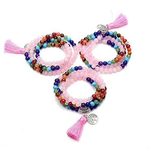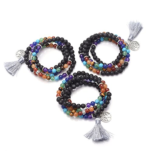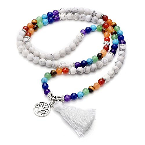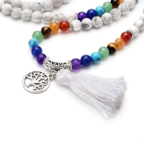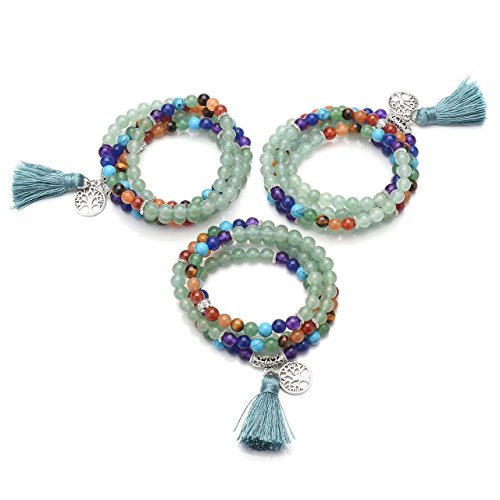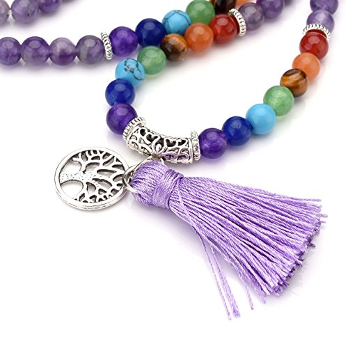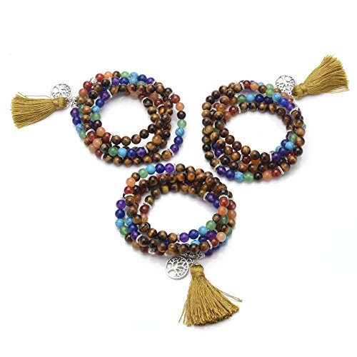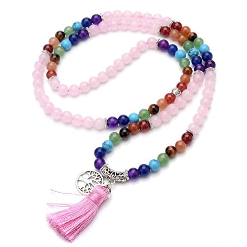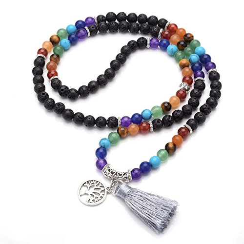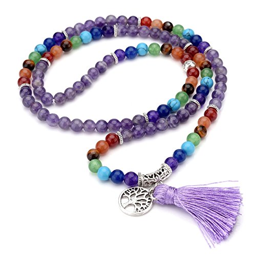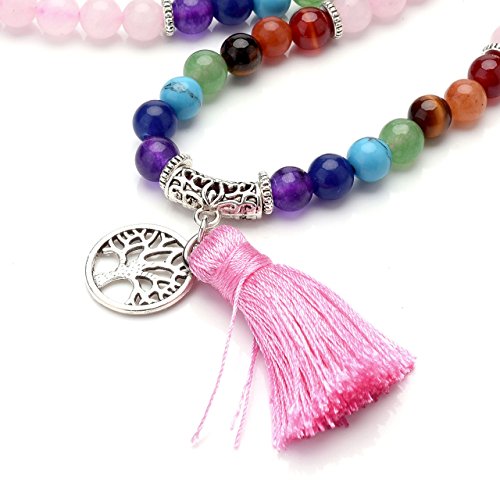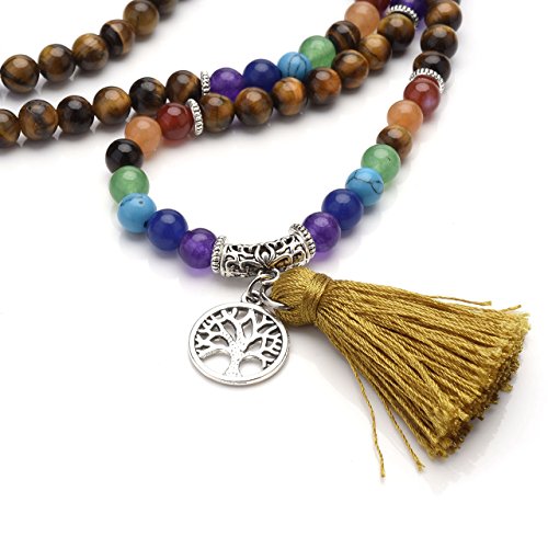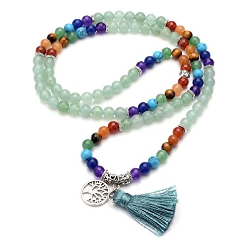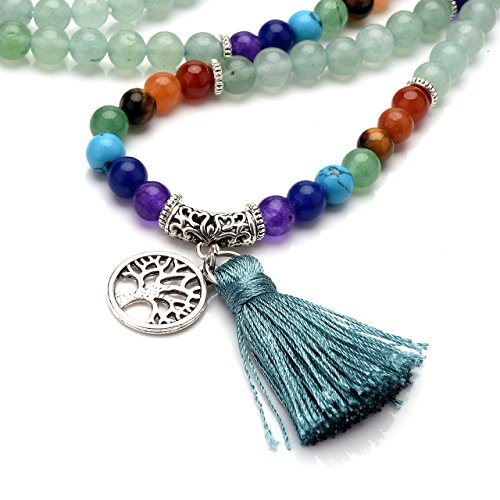QGEM Schmuck 108 Perlen Edelstein Yoga Armband Chakra lebensbaum Buddha Buddhistische Tibetische Gebetskette Healing Reiki Mala Kette Halskette mit lebensbaum Anhanger