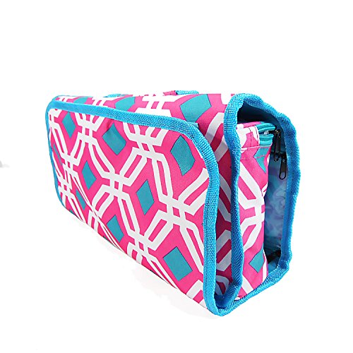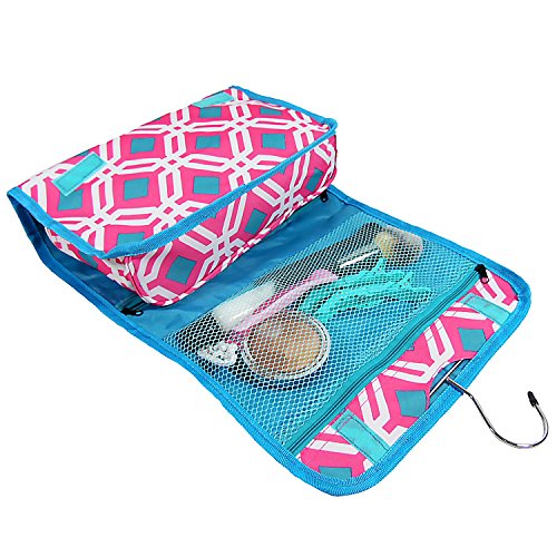 Clever Home Pink Chainlink Hanging Toiletry Cosmetic Organizer Roll with 6 Pockets and Pouch