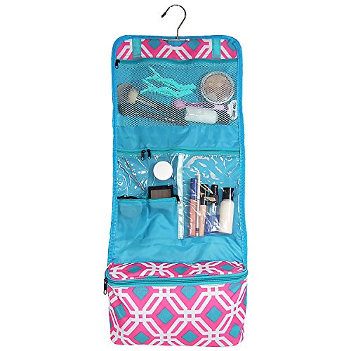 Attractive hanging carrier to organize your toiletries, skin care and cosmetics for when you travel.